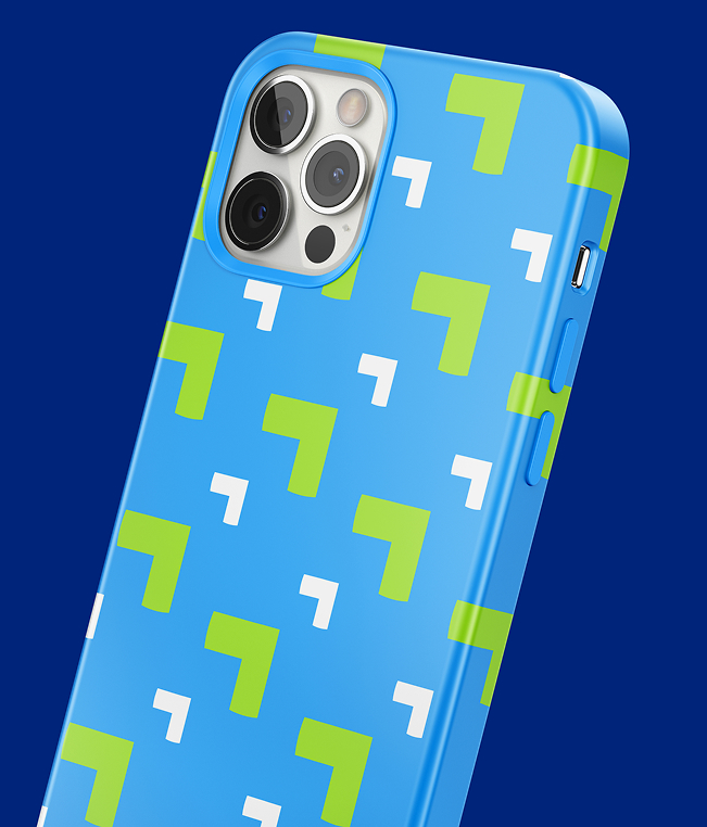 Inspired by the SIM card, Telkom’s graphic language uses clean geometry and chamfered edges to create clarity and consistency. It supports navigation and recognition across digital, retail, and product environments.